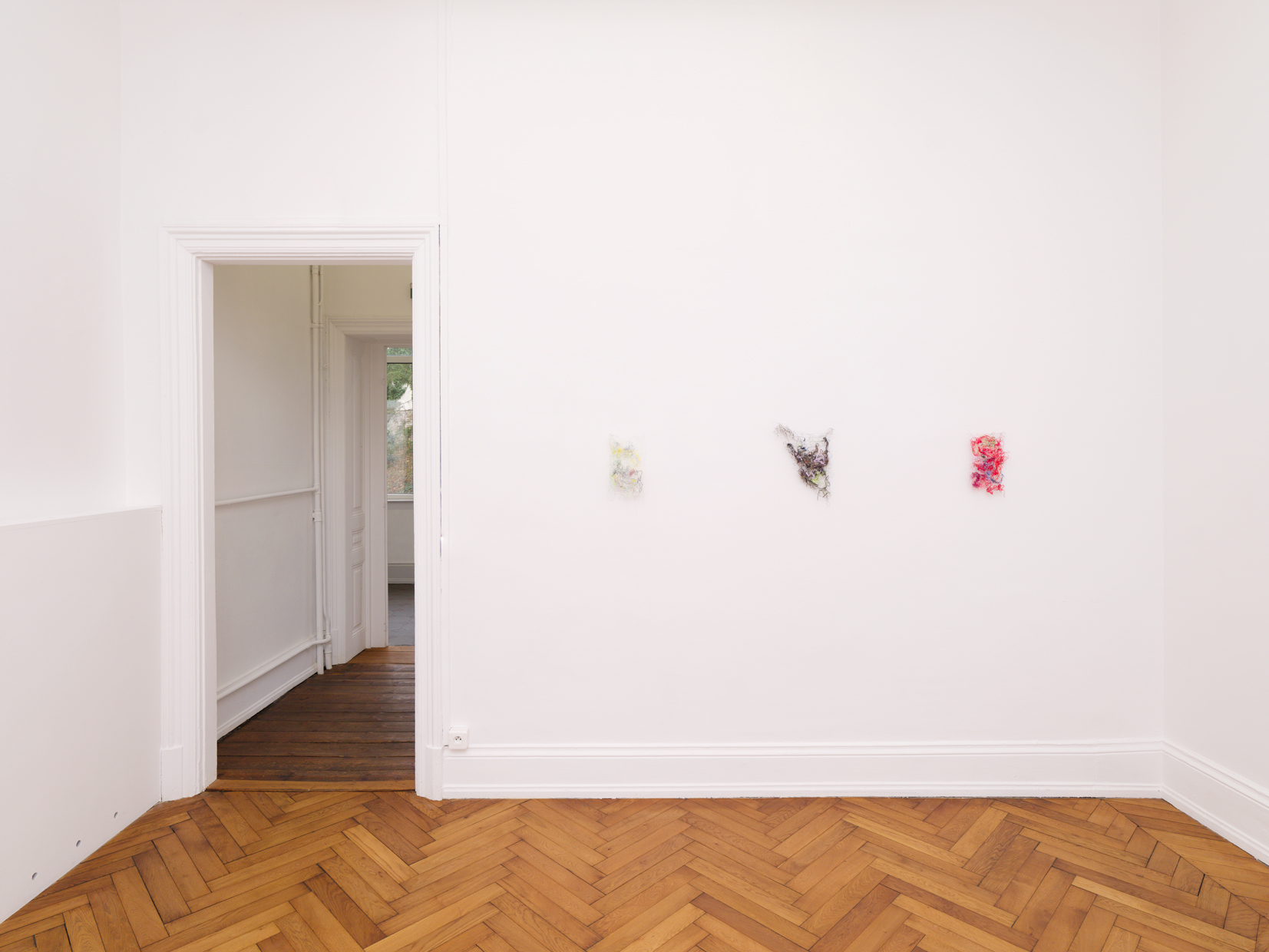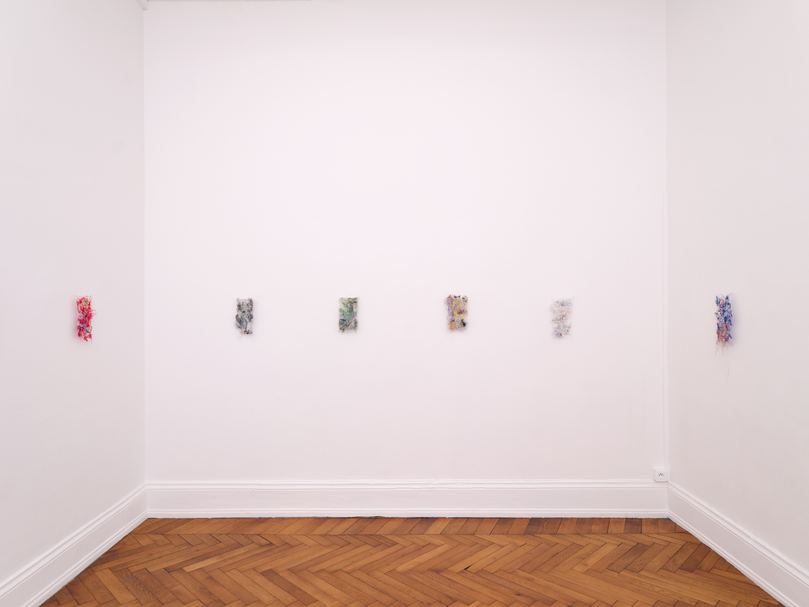In this groupshow about collectivity and friendship, i was invited to show 10 of these works that I have been making from threadcuttings of my friends’ atelier, in which the colorful sequence of their projects makes up a new fabric.